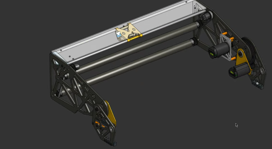 Before, we had the intake powered using the same motor as the roller floor motor, but when we got jams, we would stop intaking. We simply added a motor close to the intake pivot point to independently drive the intake. The additional motor prevents overheating and smoother intake. We have yet to test it out although this new version of our Intake has been mostly mounted.